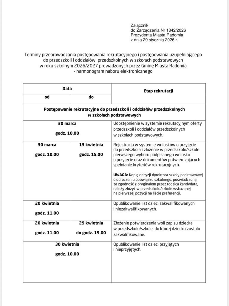 Nabór na rok szkolny 2026/2027
