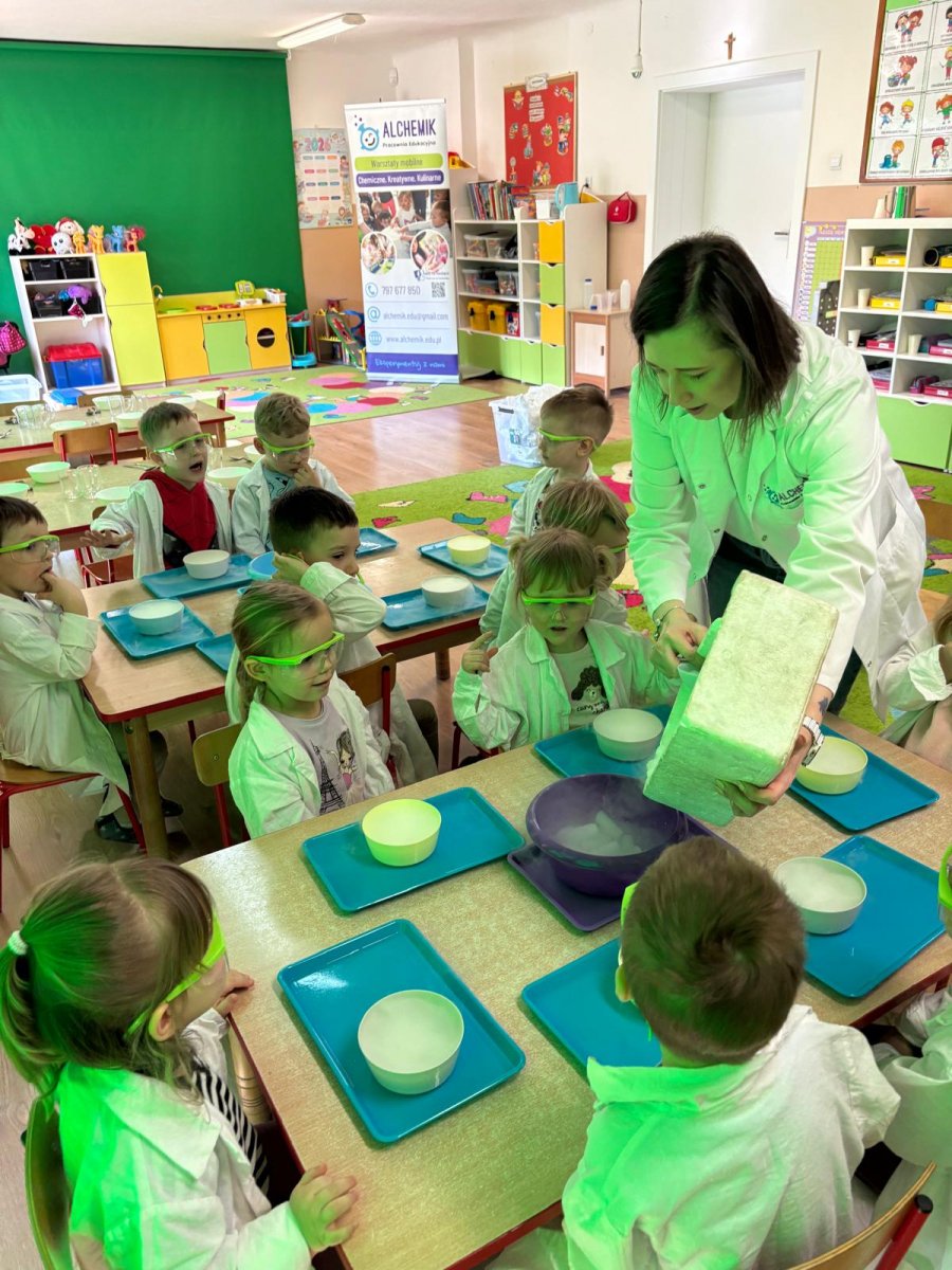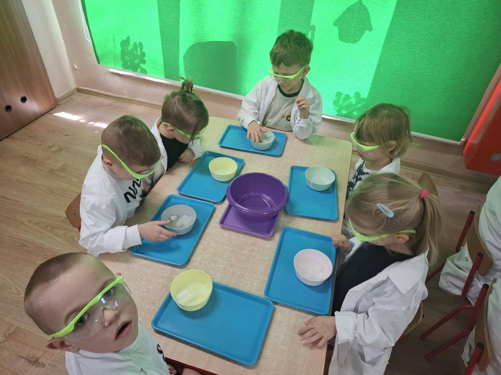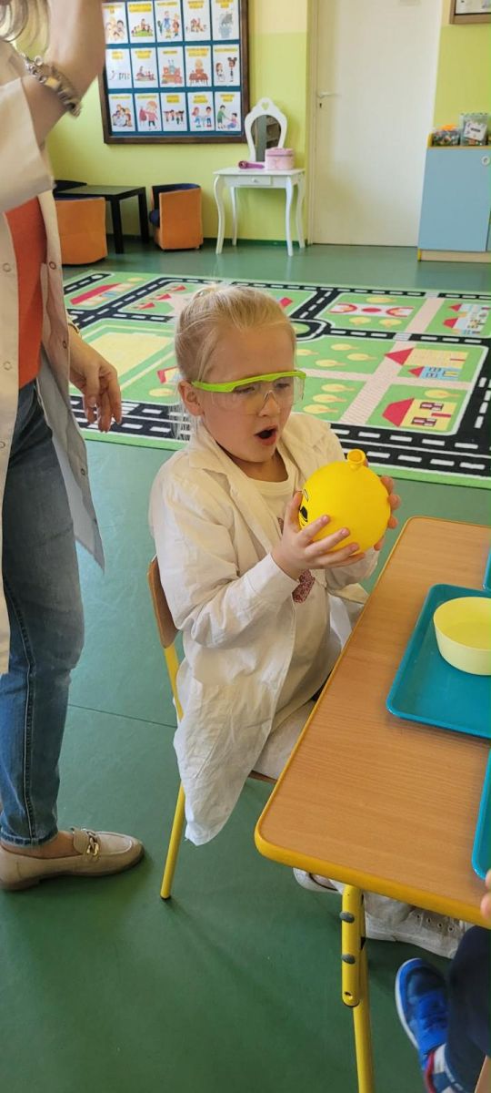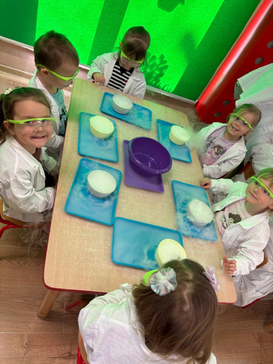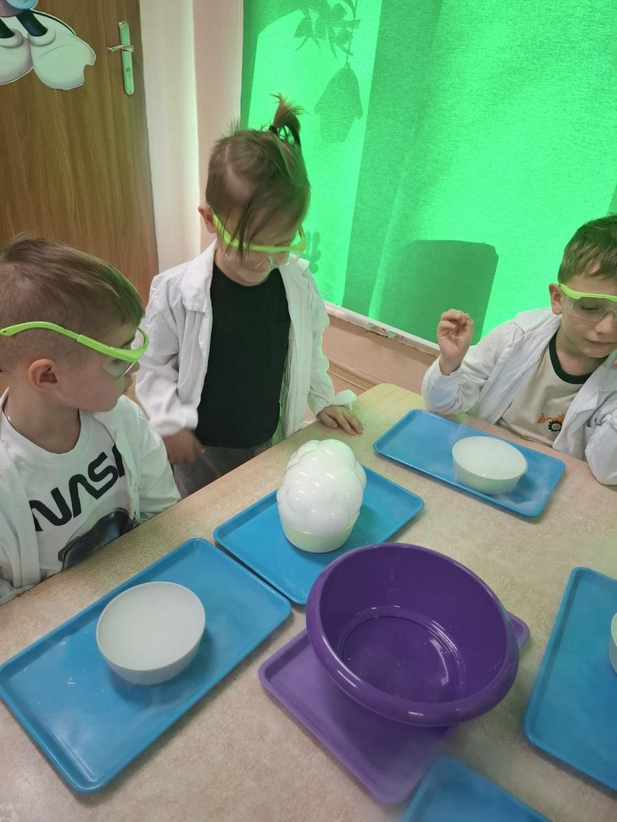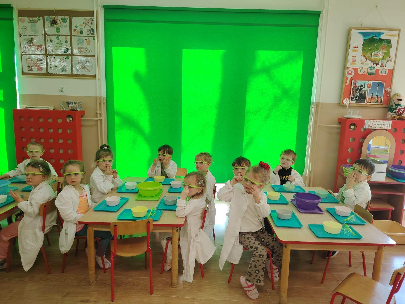 Podczas zajęć mali odkrywcy uczestniczyli w fascynujących zabawach badawczych, poznając tajemnice nauki w praktyce.