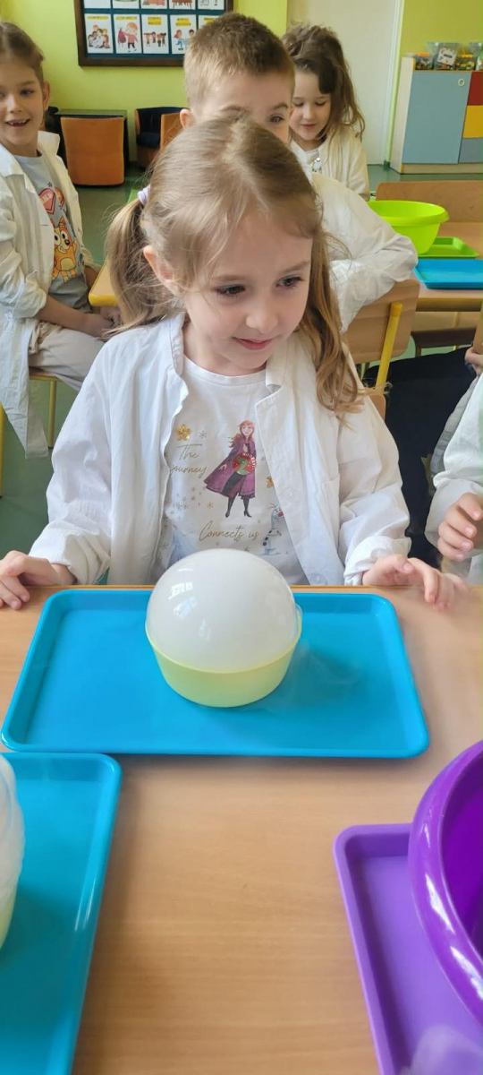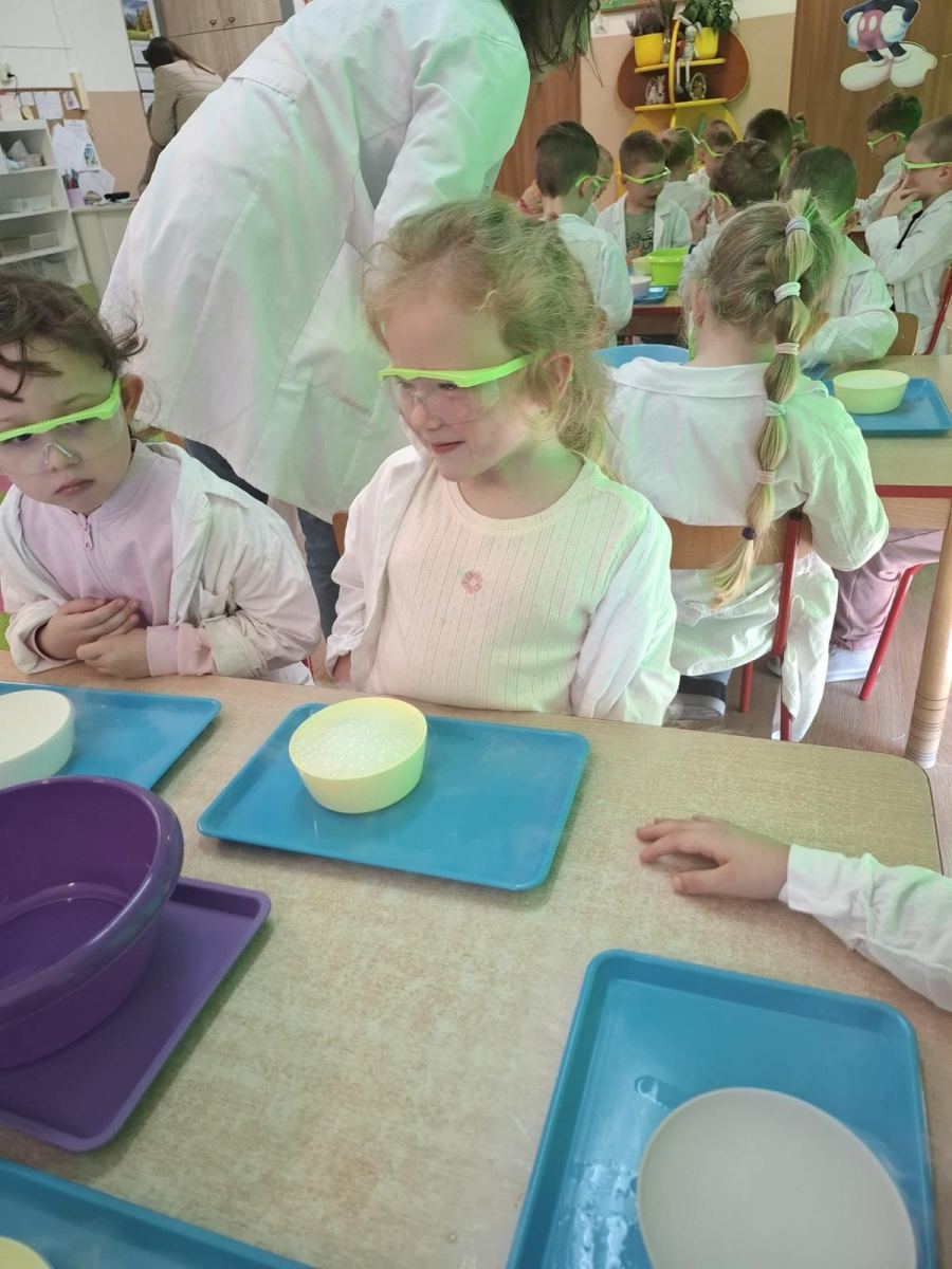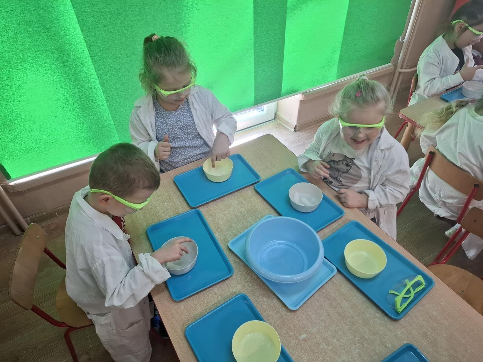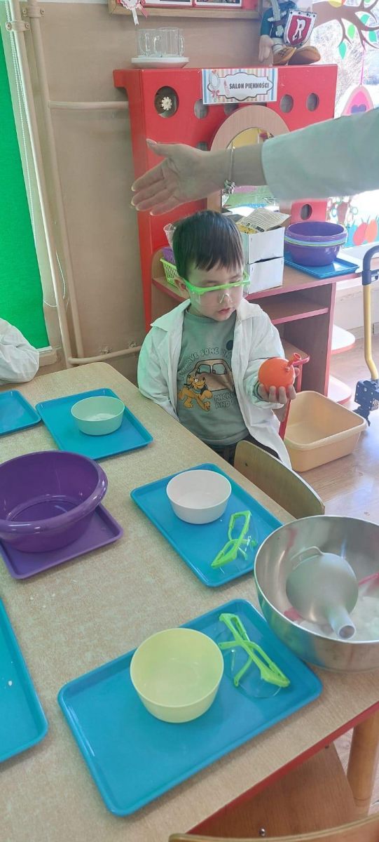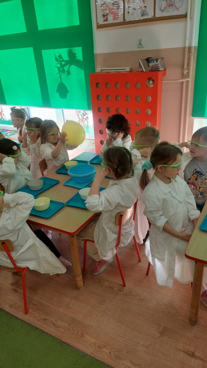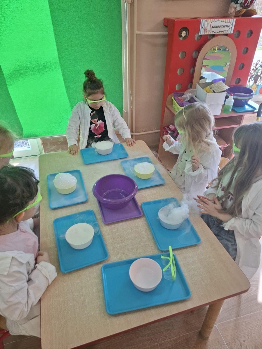 Podczas zajęć mali odkrywcy uczestniczyli w fascynujących zabawach badawczych, poznając tajemnice nauki w praktyce.