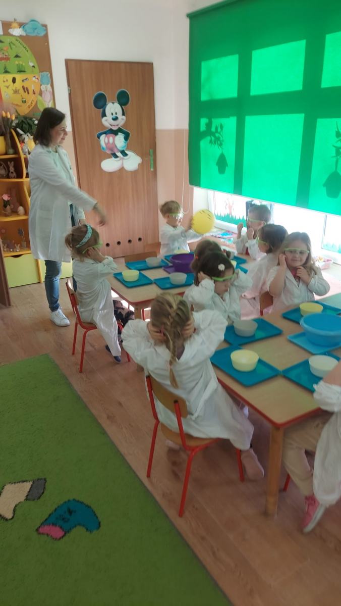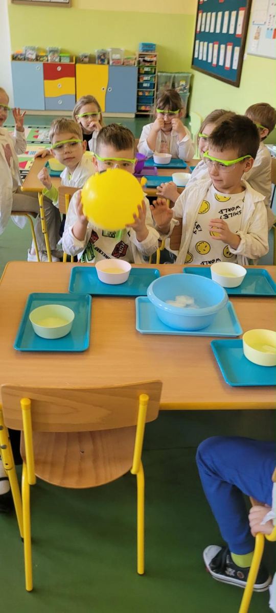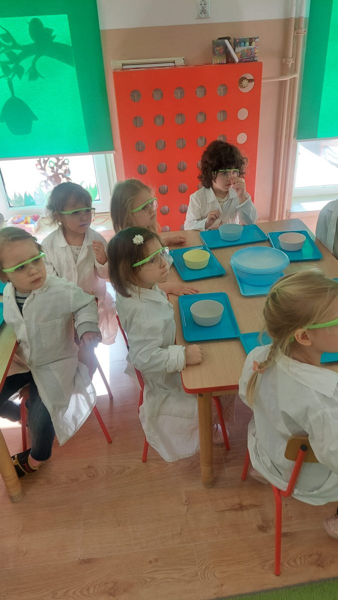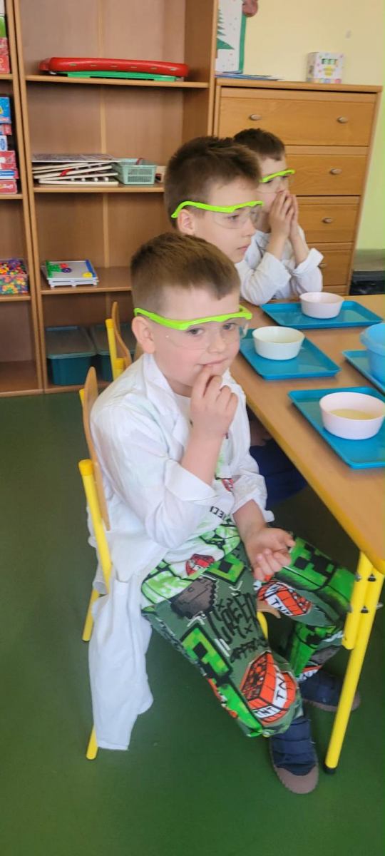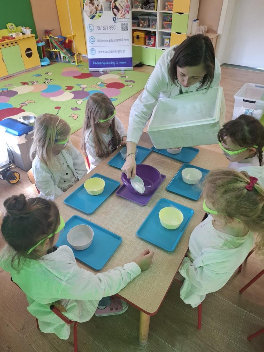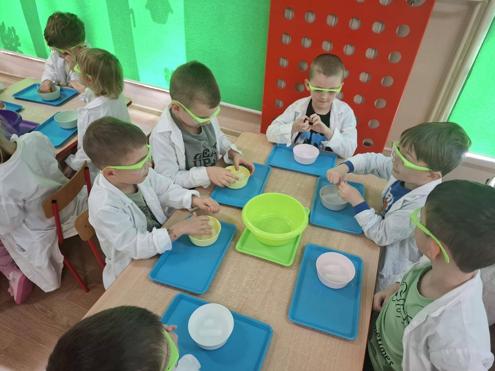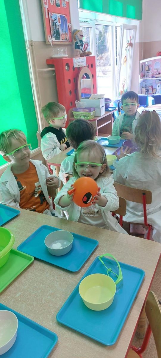 Podczas zajęć mali odkrywcy uczestniczyli w fascynujących zabawach badawczych, poznając tajemnice nauki w praktyce.