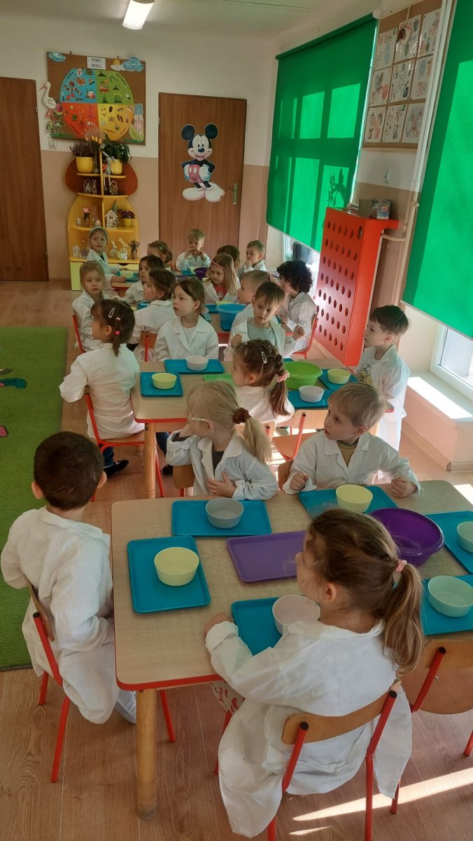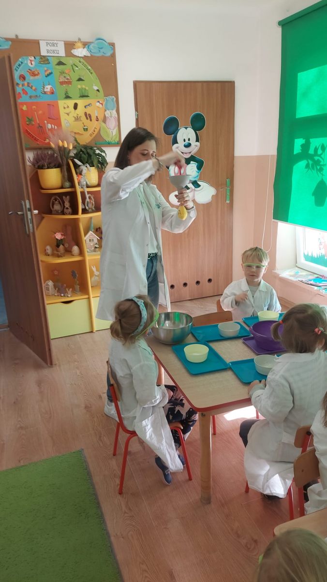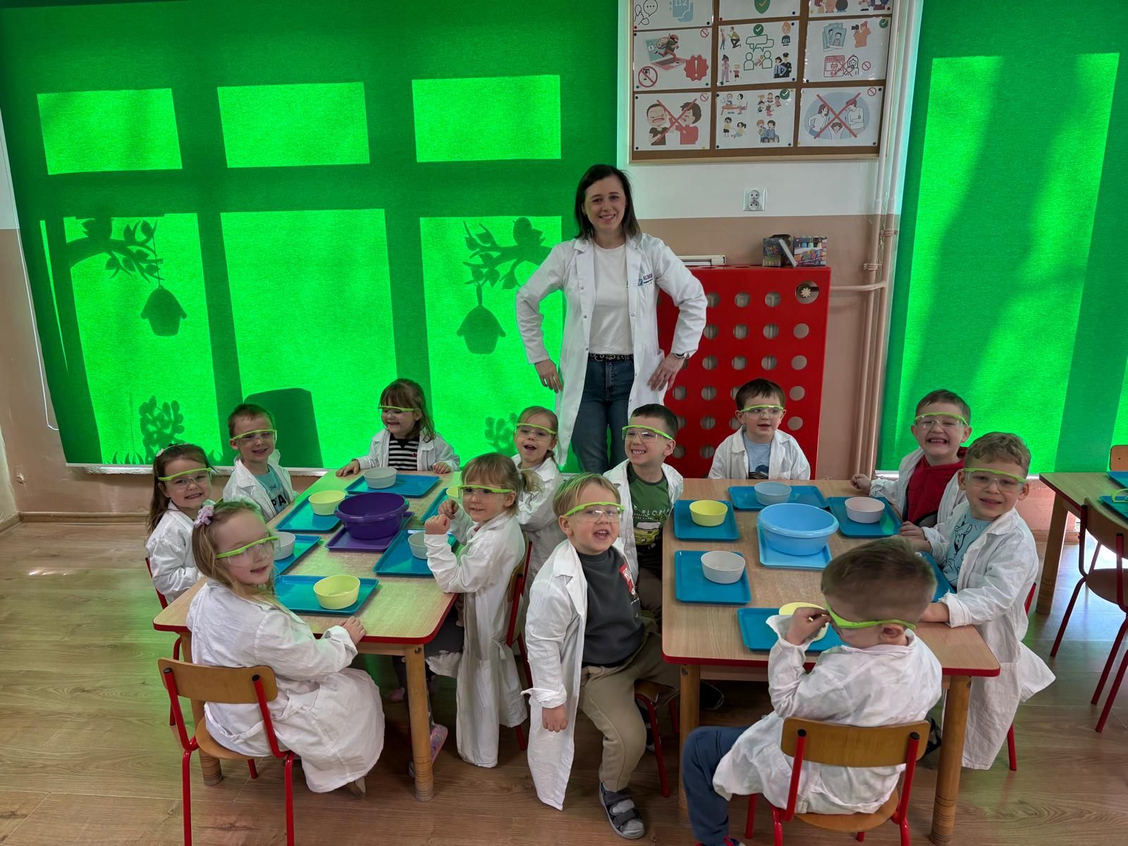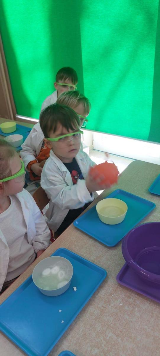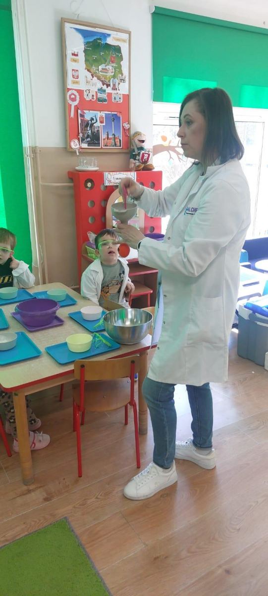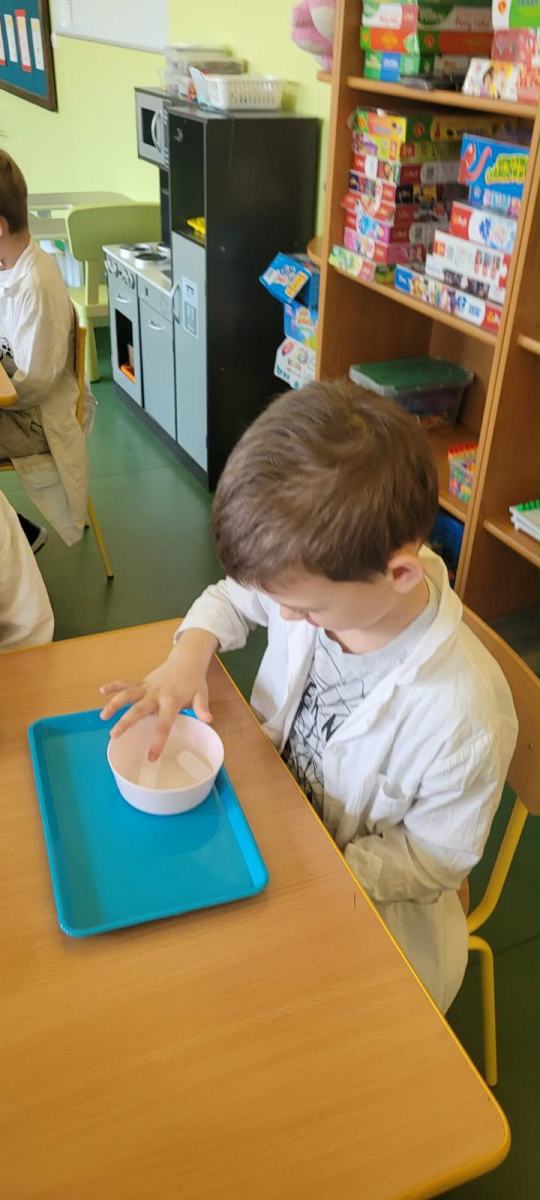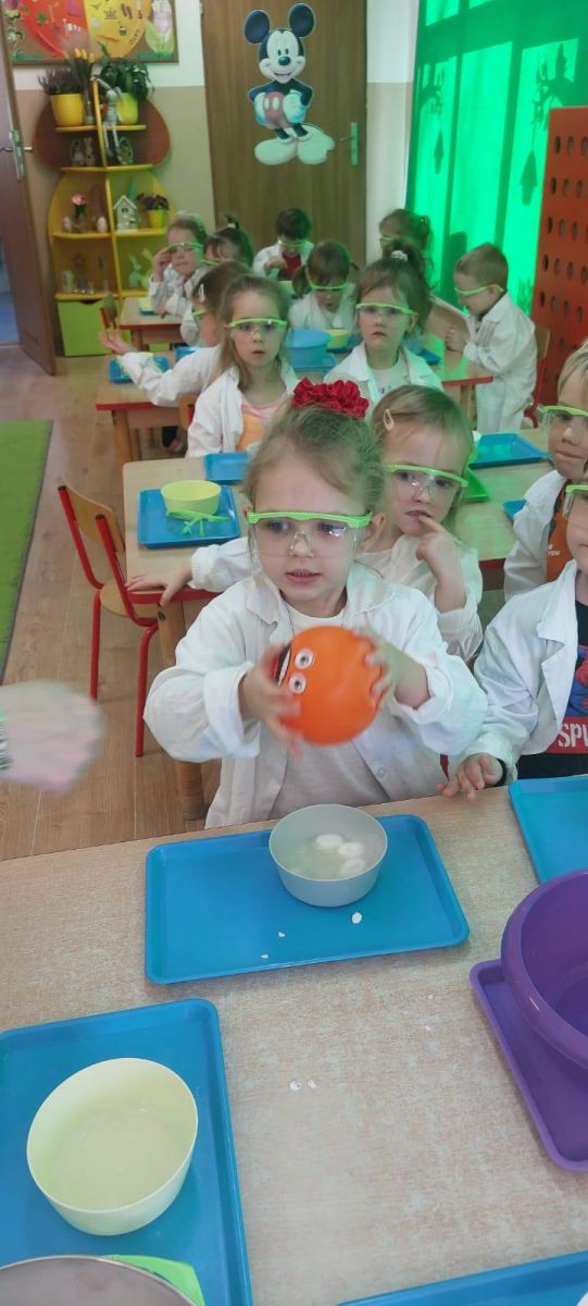 Podczas zajęć mali odkrywcy uczestniczyli w fascynujących zabawach badawczych, poznając tajemnice nauki w praktyce.