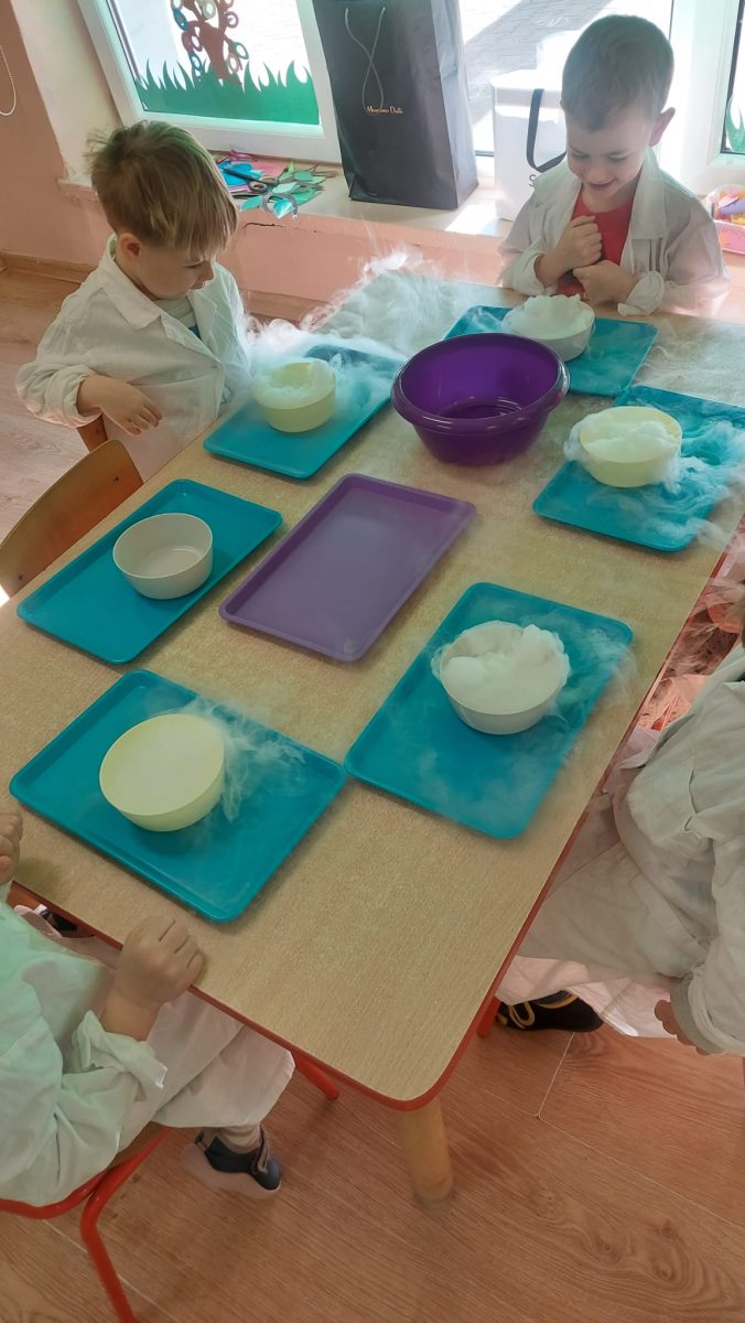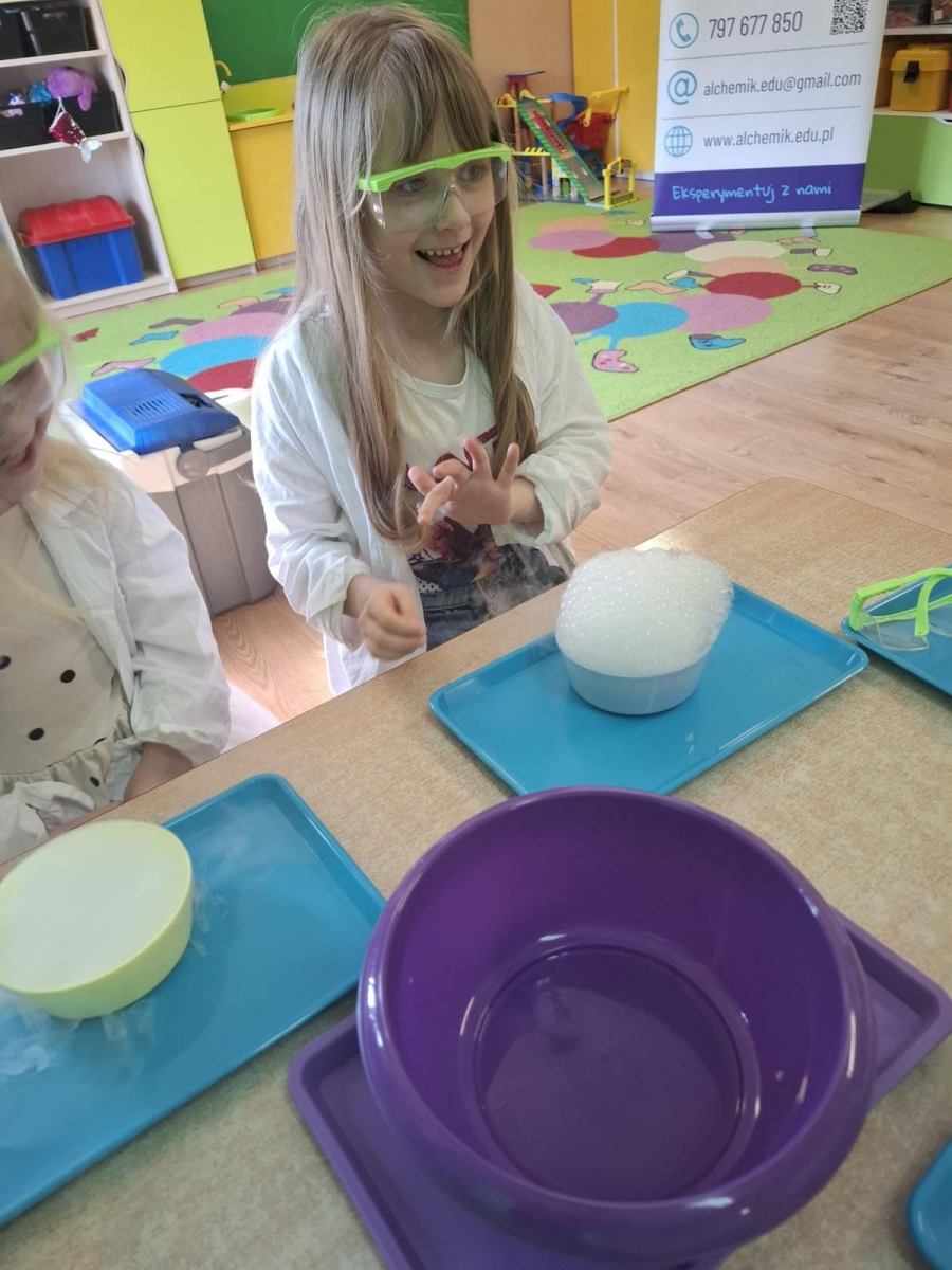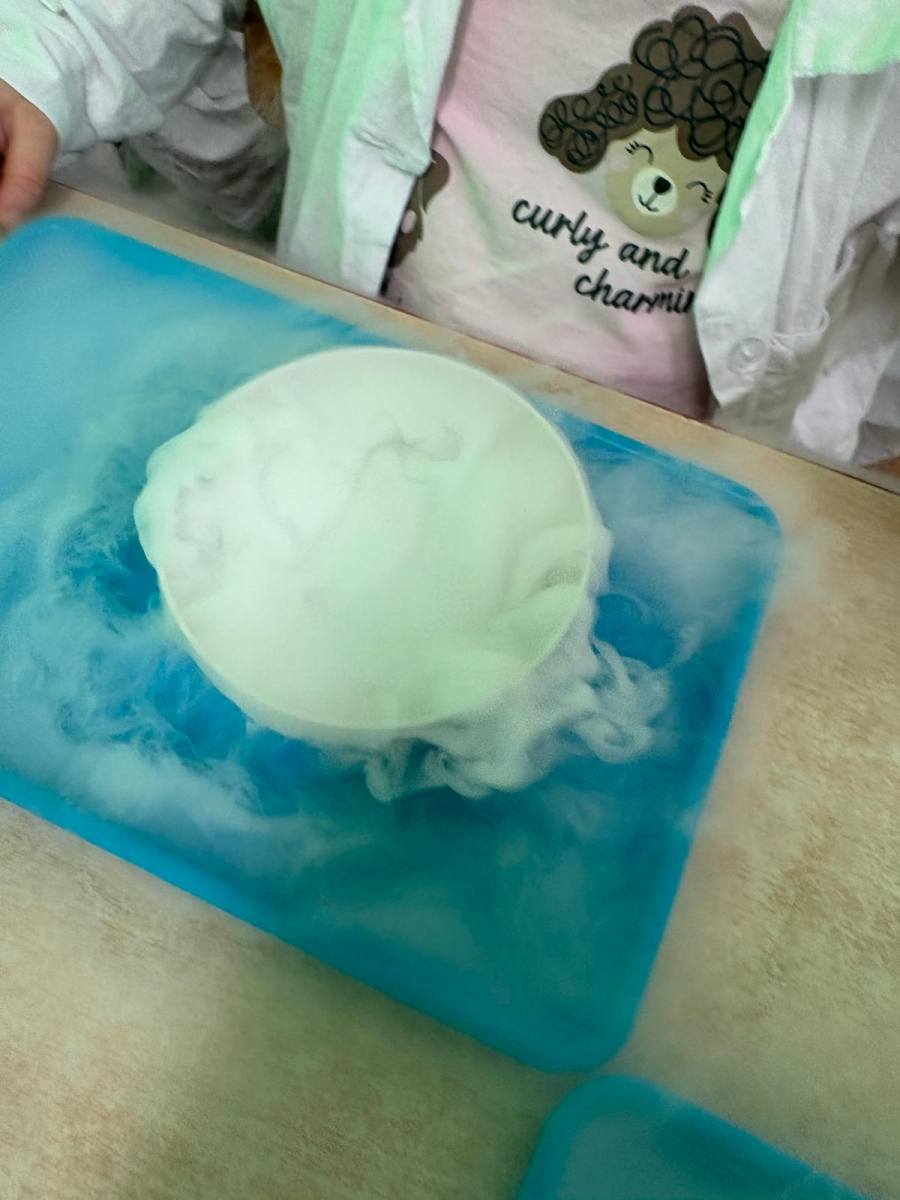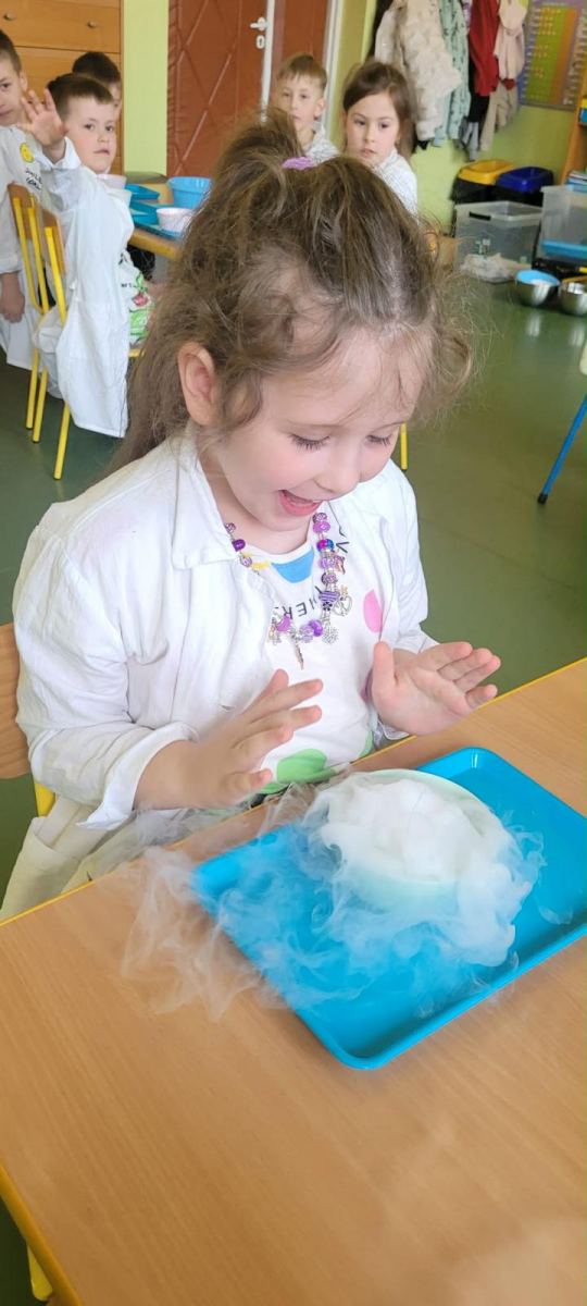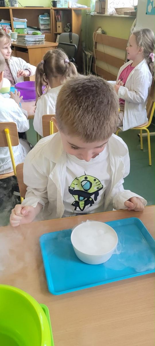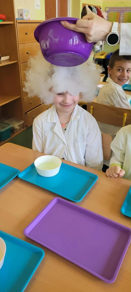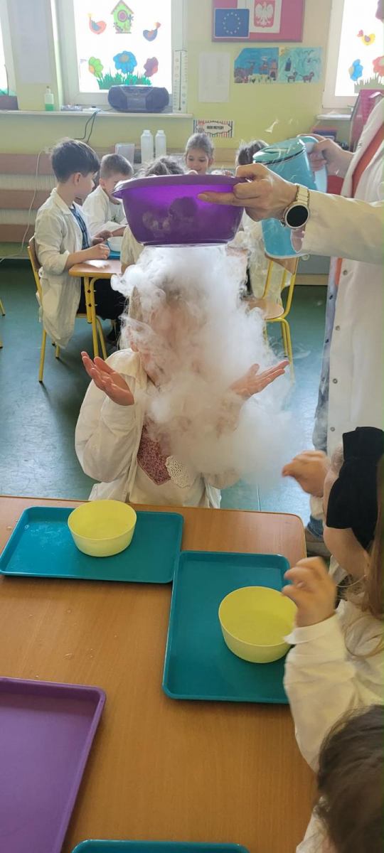 Główną atrakcją było doświadczenie z suchym lodem, dzięki któremu dzieci mogły zaobserwować zjawisko sublimacji – przejścia ze stanu stałego bezpośrednio w gazowy, z pominięciem stanu ciekłego. Warsztaty nie tylko dostarczyły mnóstwo radości, ale także rozbudziły ciekawość świata i chęć poznawania nauki poprzez zabawę.
