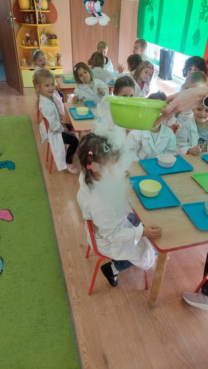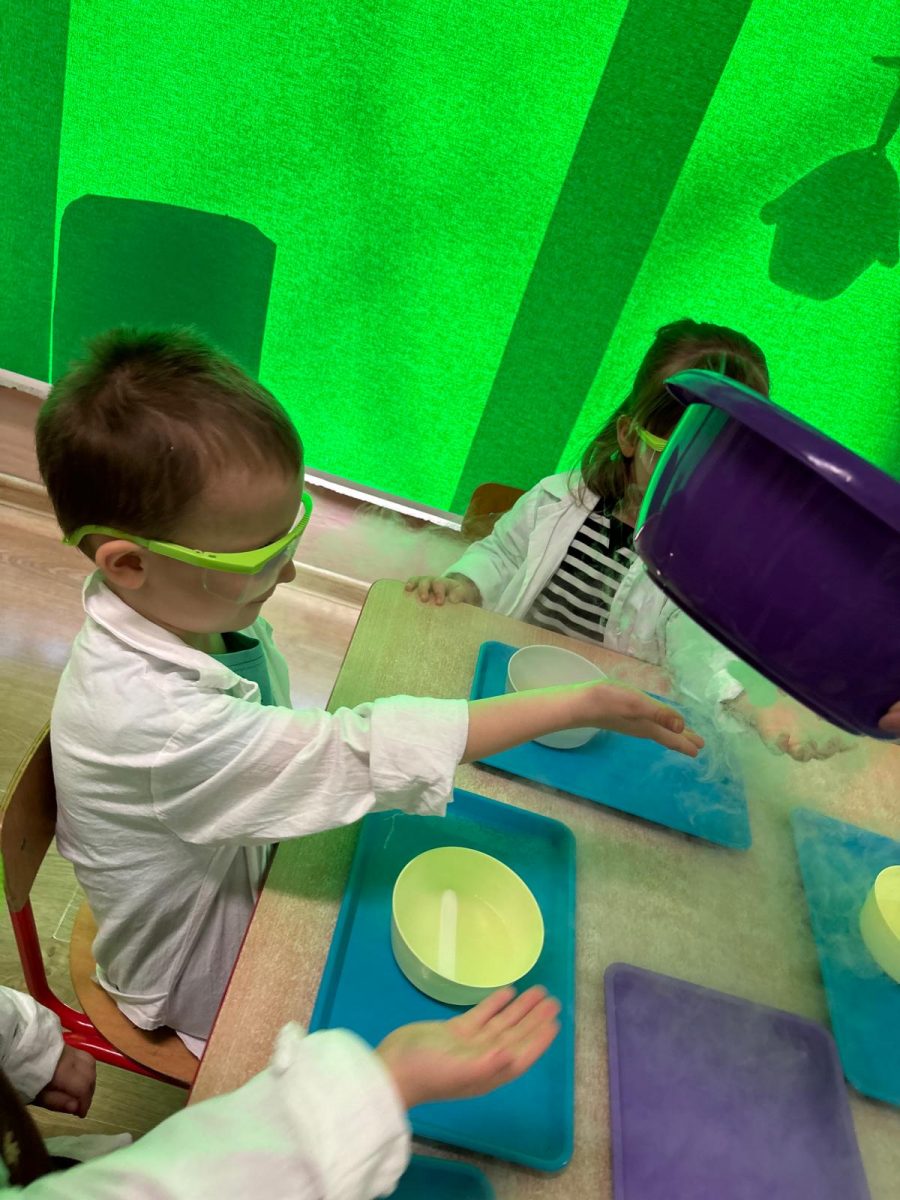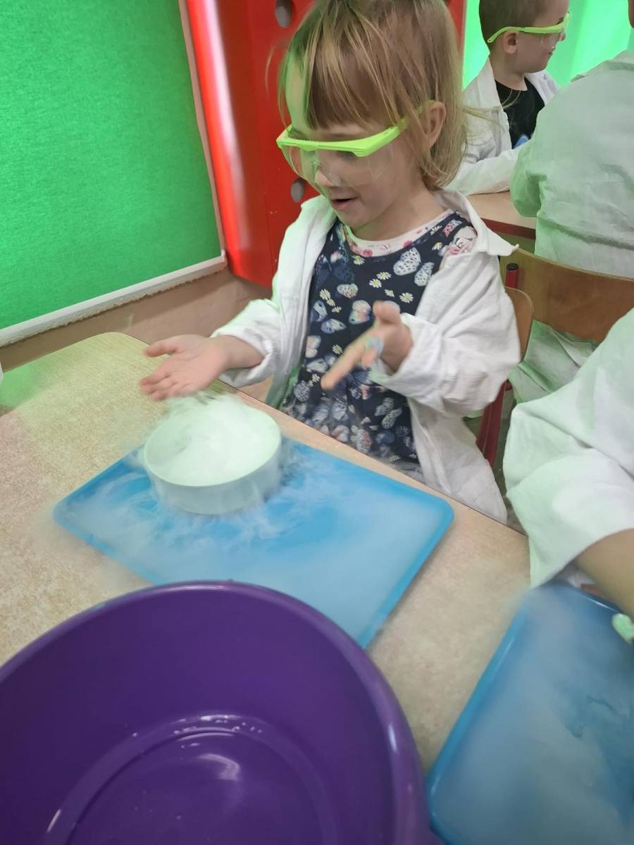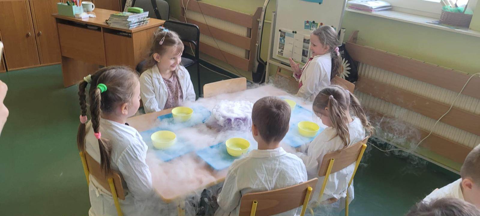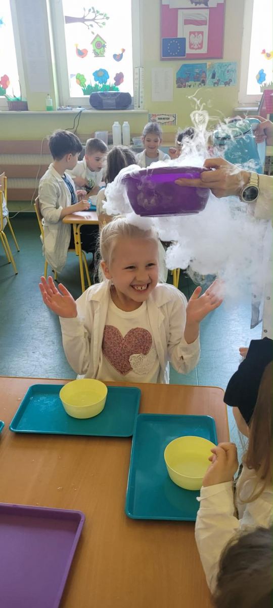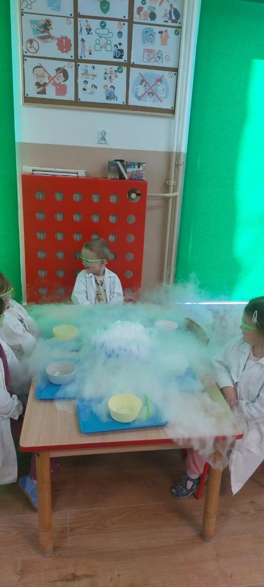 Główną atrakcją było doświadczenie z suchym lodem, dzięki któremu dzieci mogły zaobserwować zjawisko sublimacji – przejścia ze stanu stałego bezpośrednio w gazowy, z pominięciem stanu ciekłego. Warsztaty nie tylko dostarczyły mnóstwo radości, ale także rozbudziły ciekawość świata i chęć poznawania nauki poprzez zabawę.