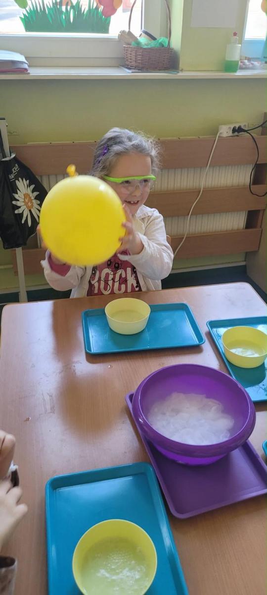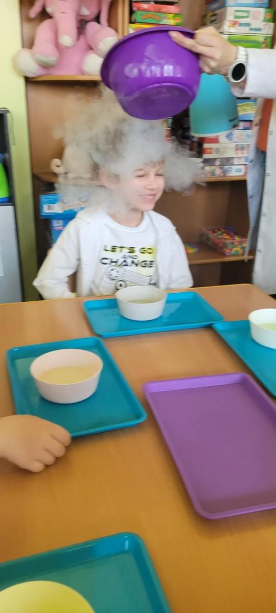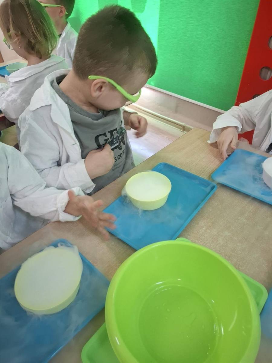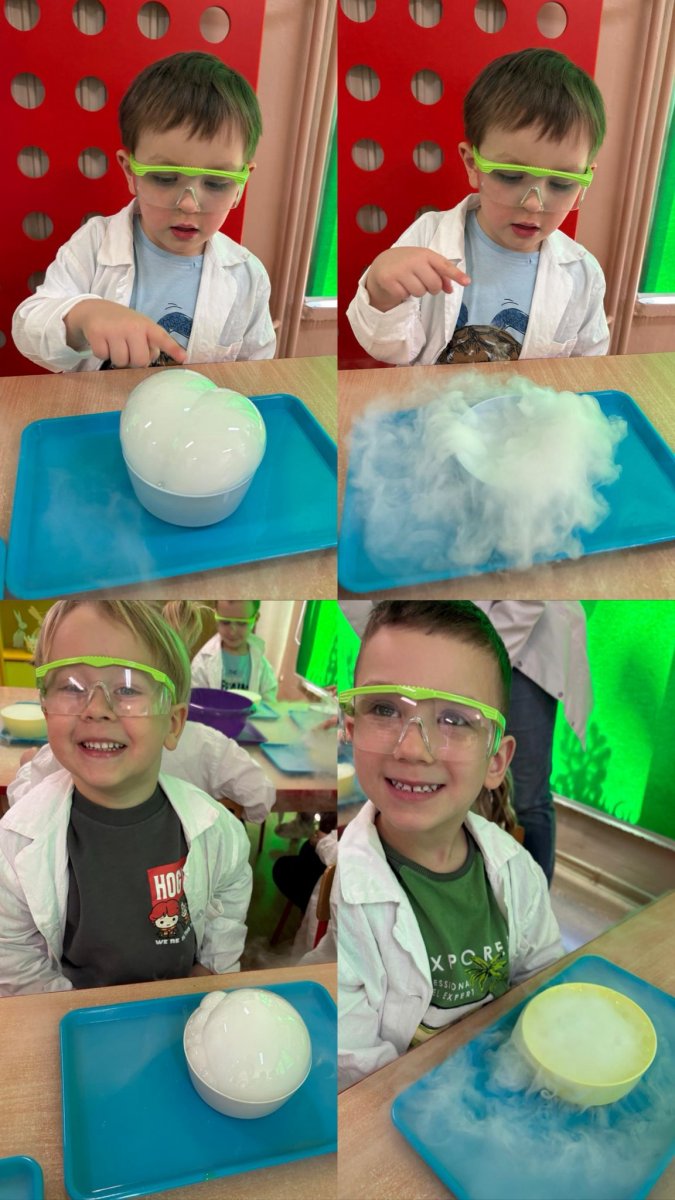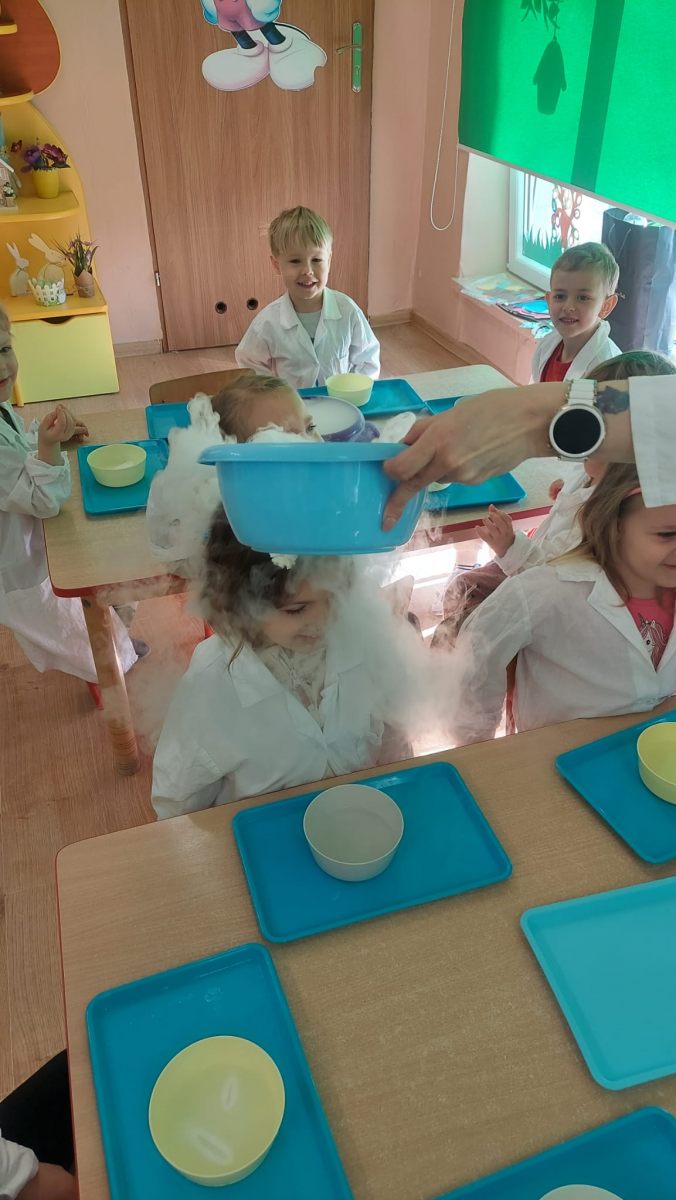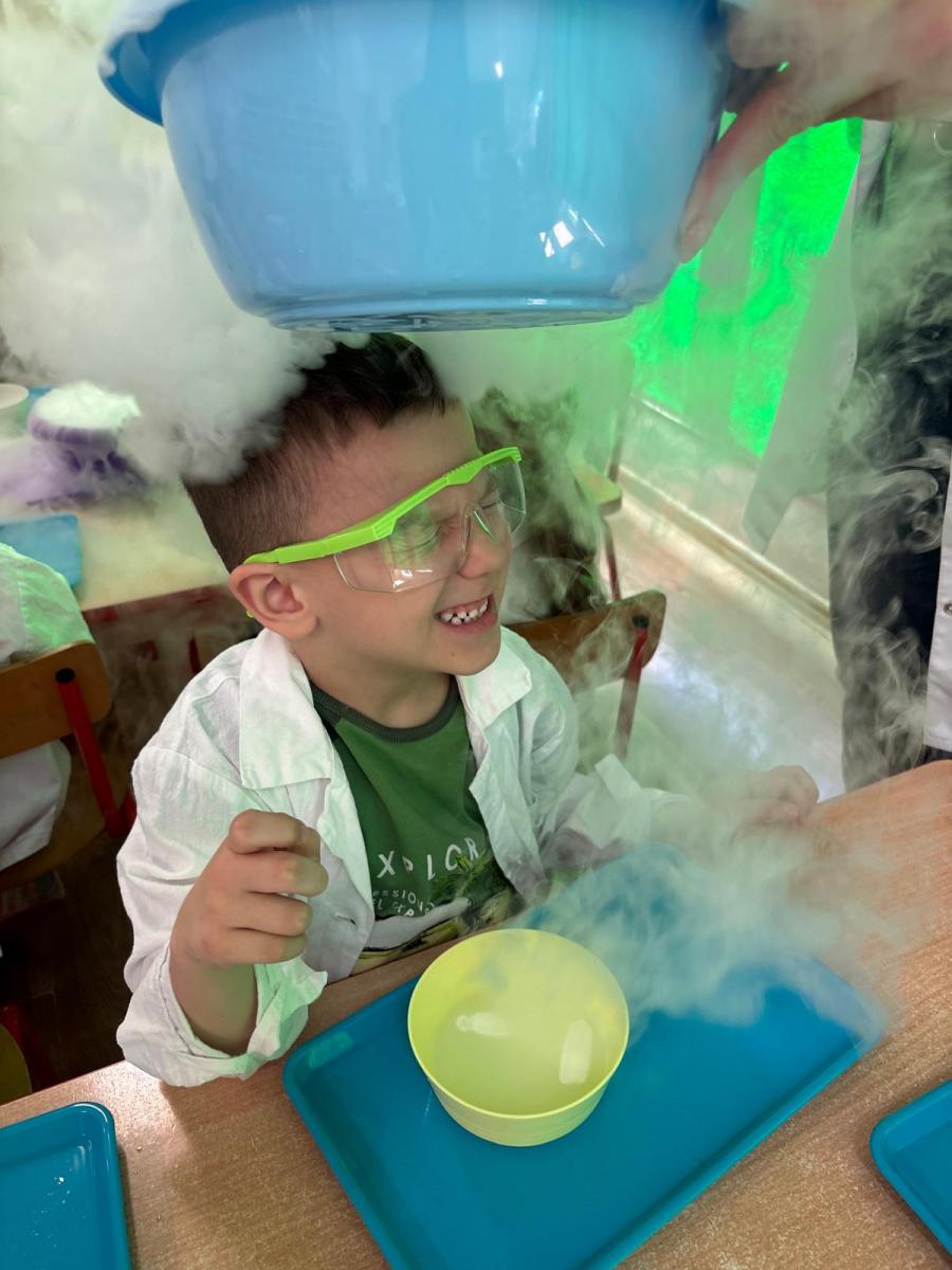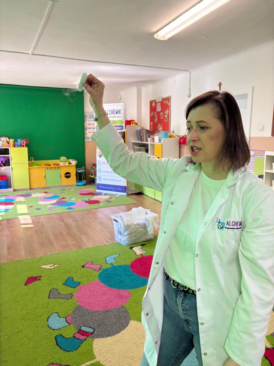 Główną atrakcją było doświadczenie z suchym lodem, dzięki któremu dzieci mogły zaobserwować zjawisko sublimacji – przejścia ze stanu stałego bezpośrednio w gazowy, z pominięciem stanu ciekłego. Warsztaty nie tylko dostarczyły mnóstwo radości, ale także rozbudziły ciekawość świata i chęć poznawania nauki poprzez zabawę.