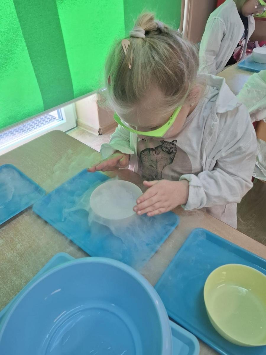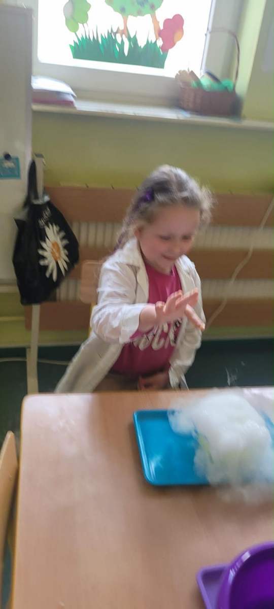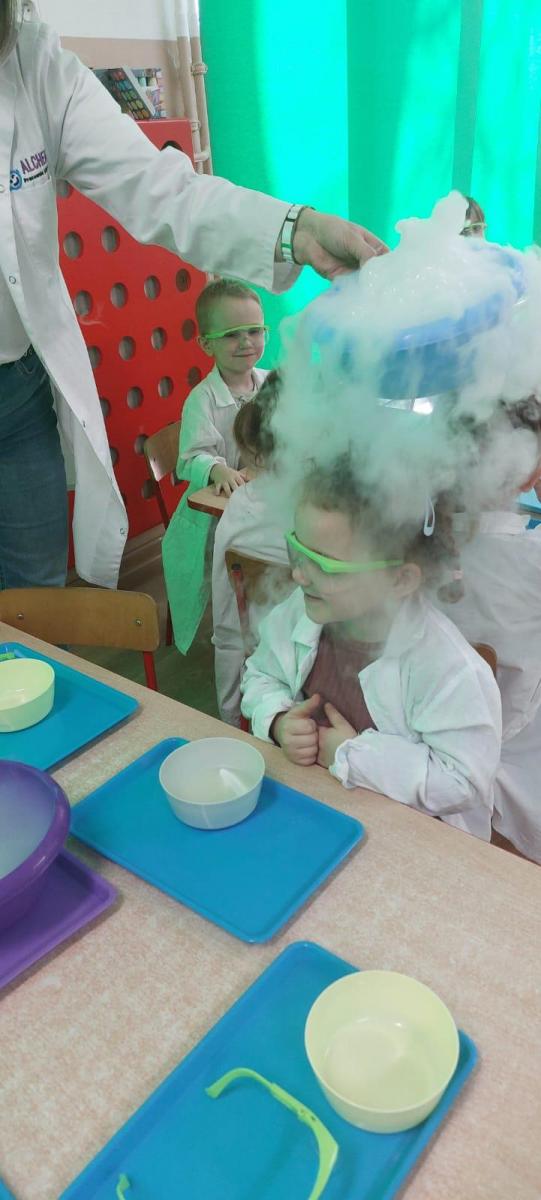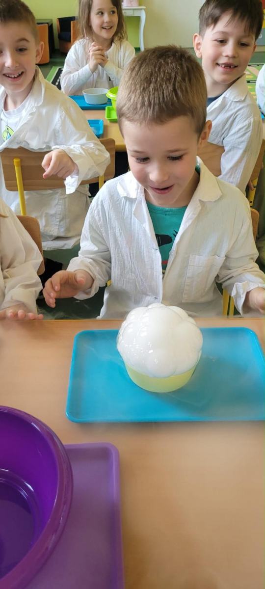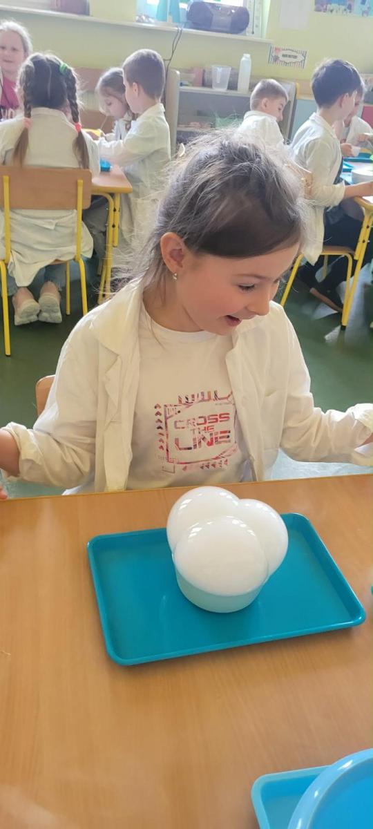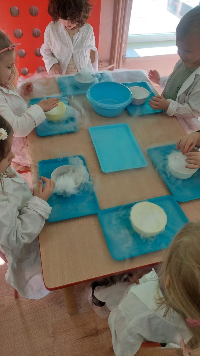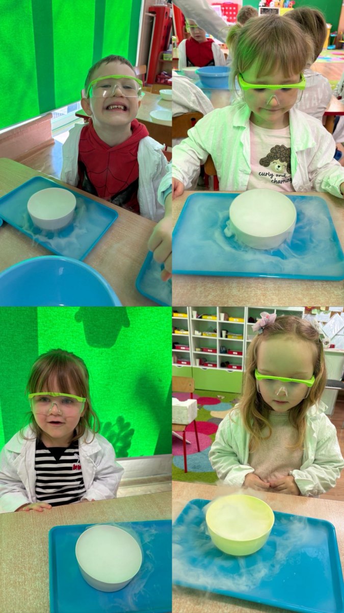 Główną atrakcją było doświadczenie z suchym lodem, dzięki któremu dzieci mogły zaobserwować zjawisko sublimacji – przejścia ze stanu stałego bezpośrednio w gazowy, z pominięciem stanu ciekłego. Warsztaty nie tylko dostarczyły mnóstwo radości, ale także rozbudziły ciekawość świata i chęć poznawania nauki poprzez zabawę.