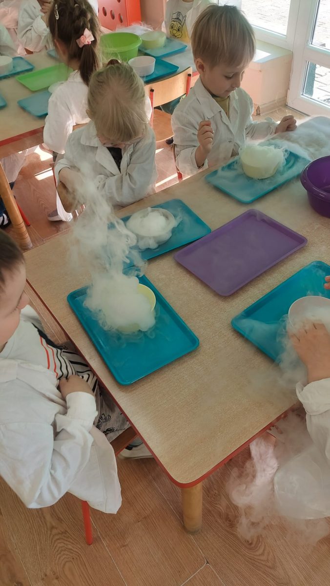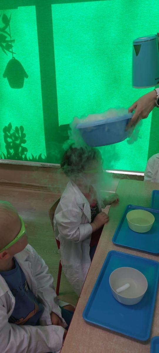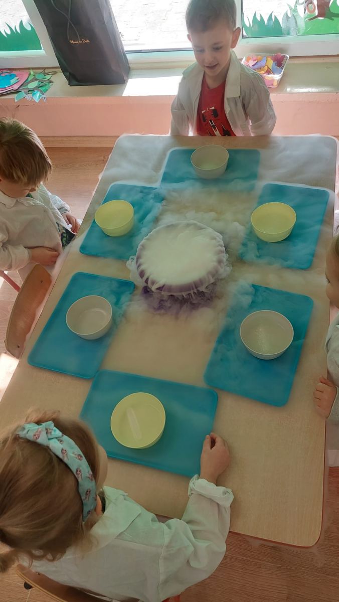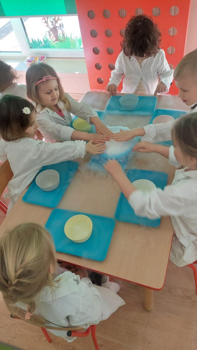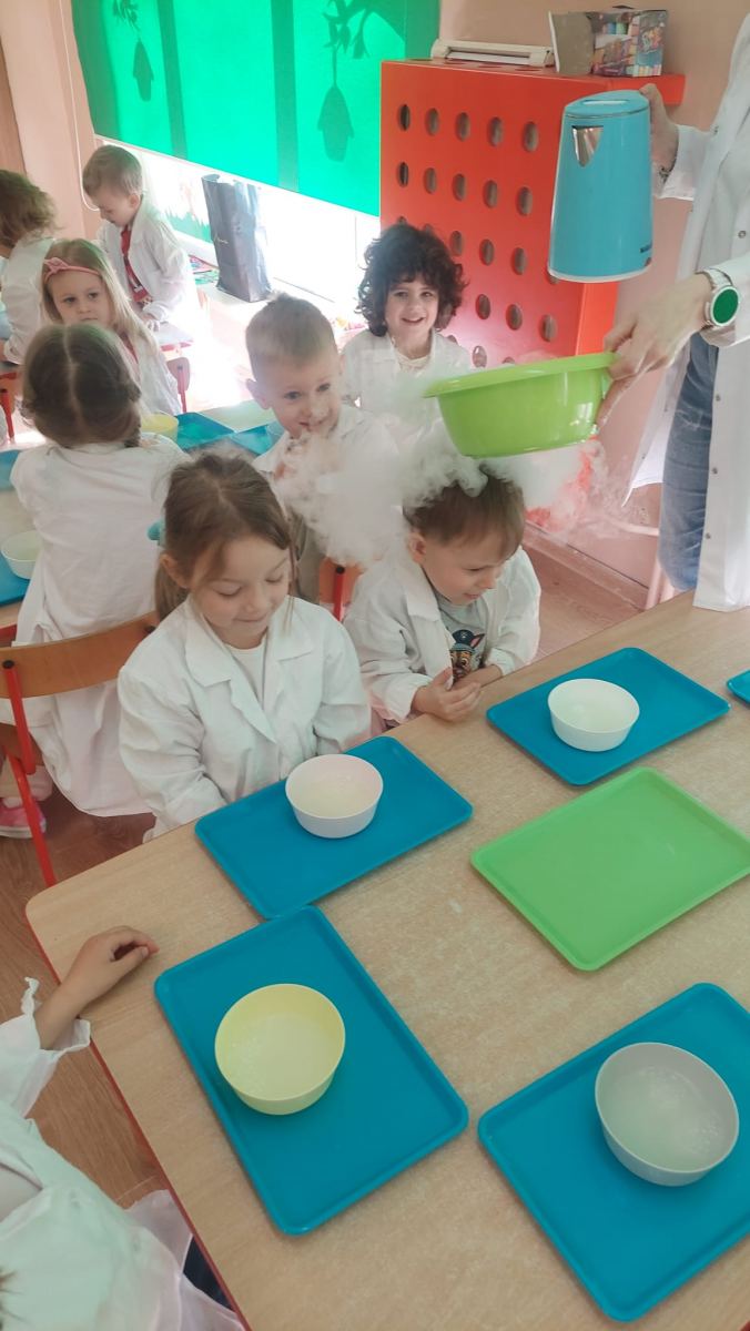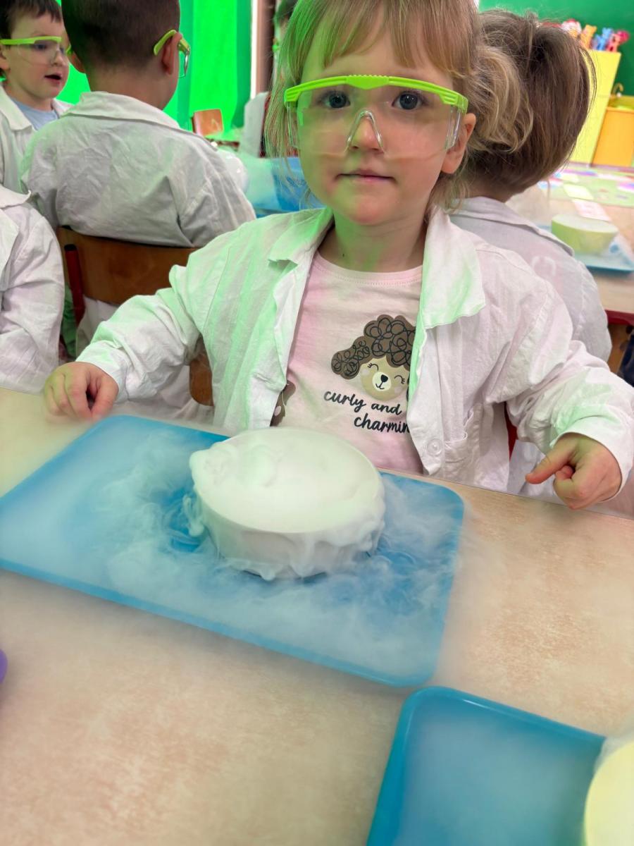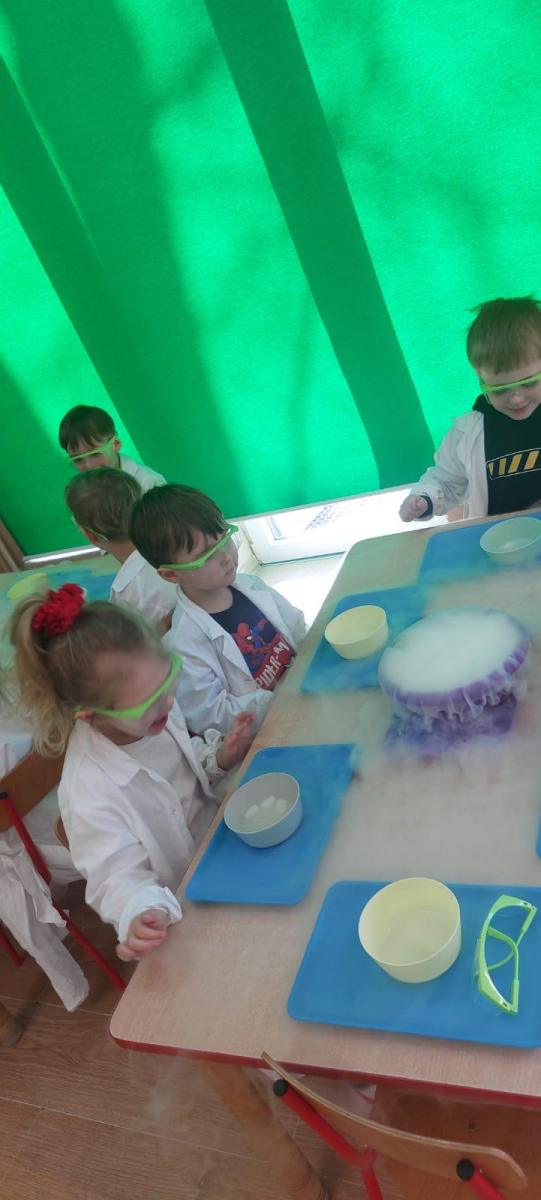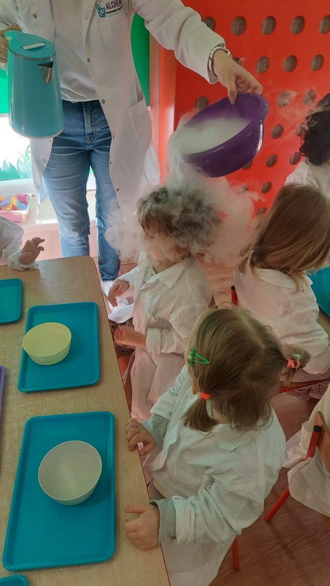 Główną atrakcją było doświadczenie z suchym lodem, dzięki któremu dzieci mogły zaobserwować zjawisko sublimacji – przejścia ze stanu stałego bezpośrednio w gazowy, z pominięciem stanu ciekłego. Warsztaty nie tylko dostarczyły mnóstwo radości, ale także rozbudziły ciekawość świata i chęć poznawania nauki poprzez zabawę.