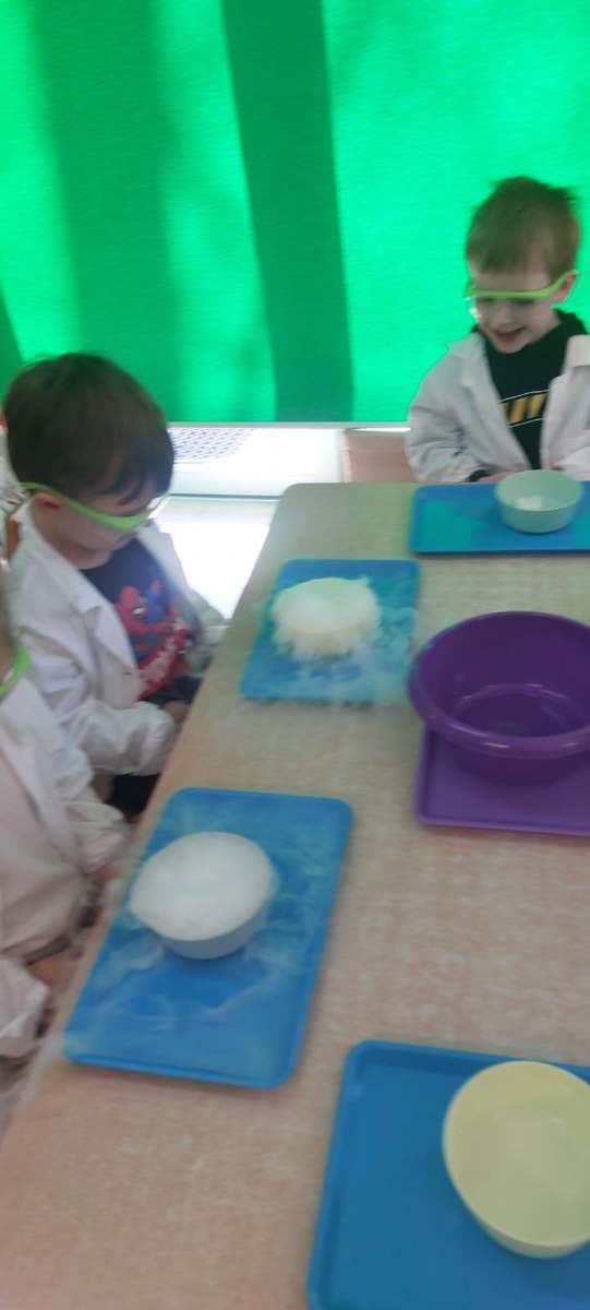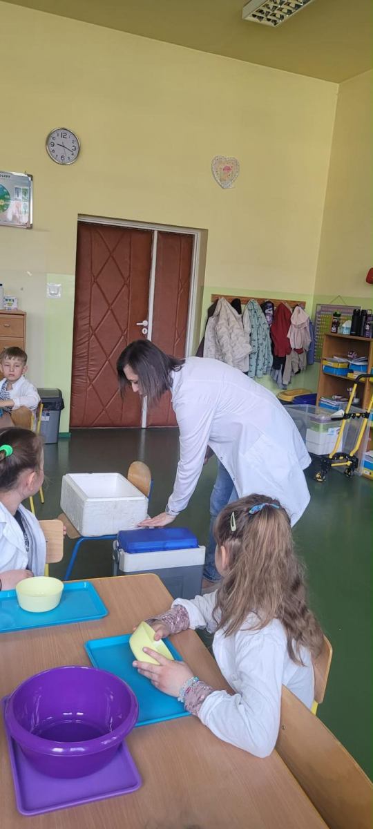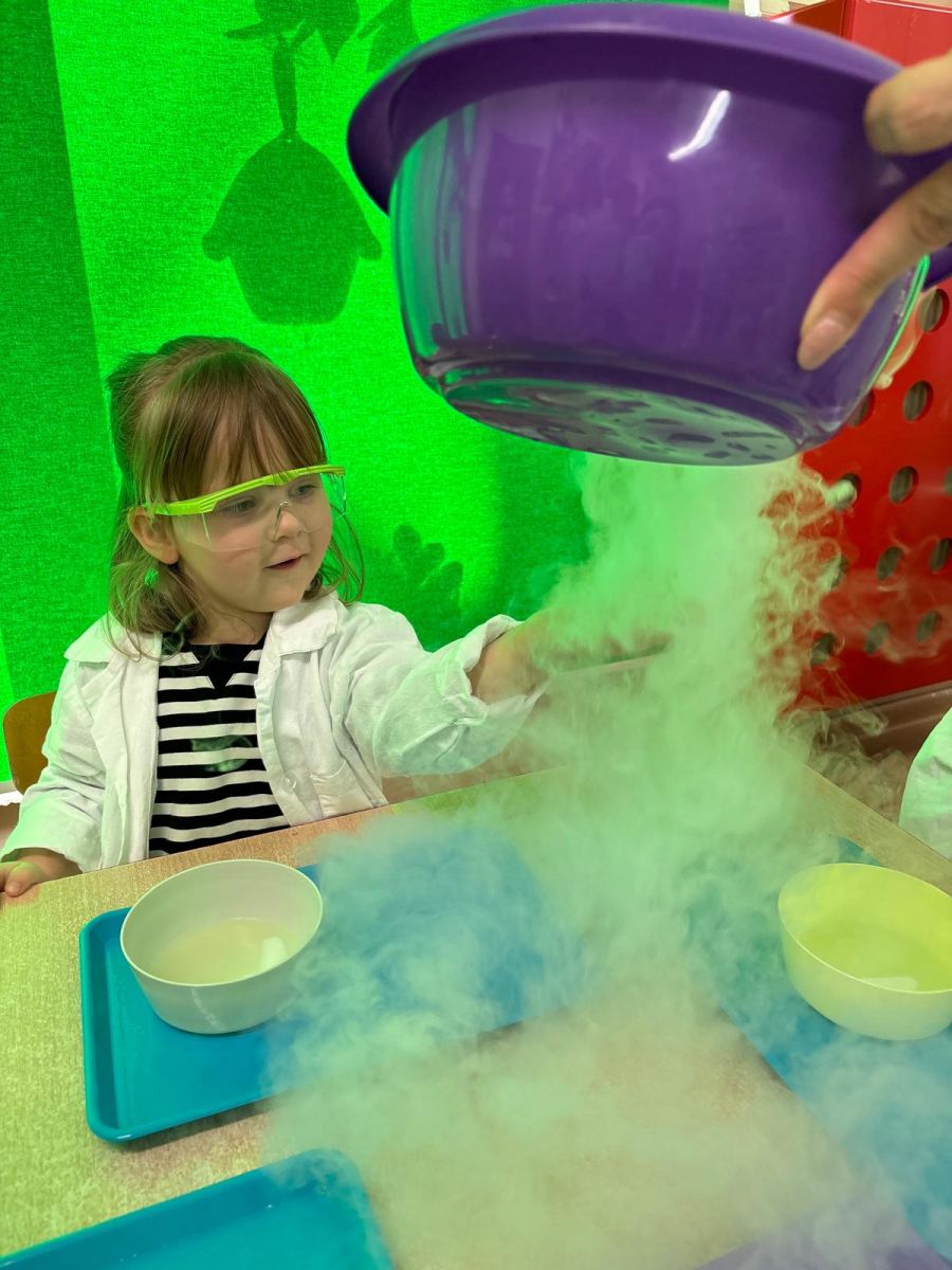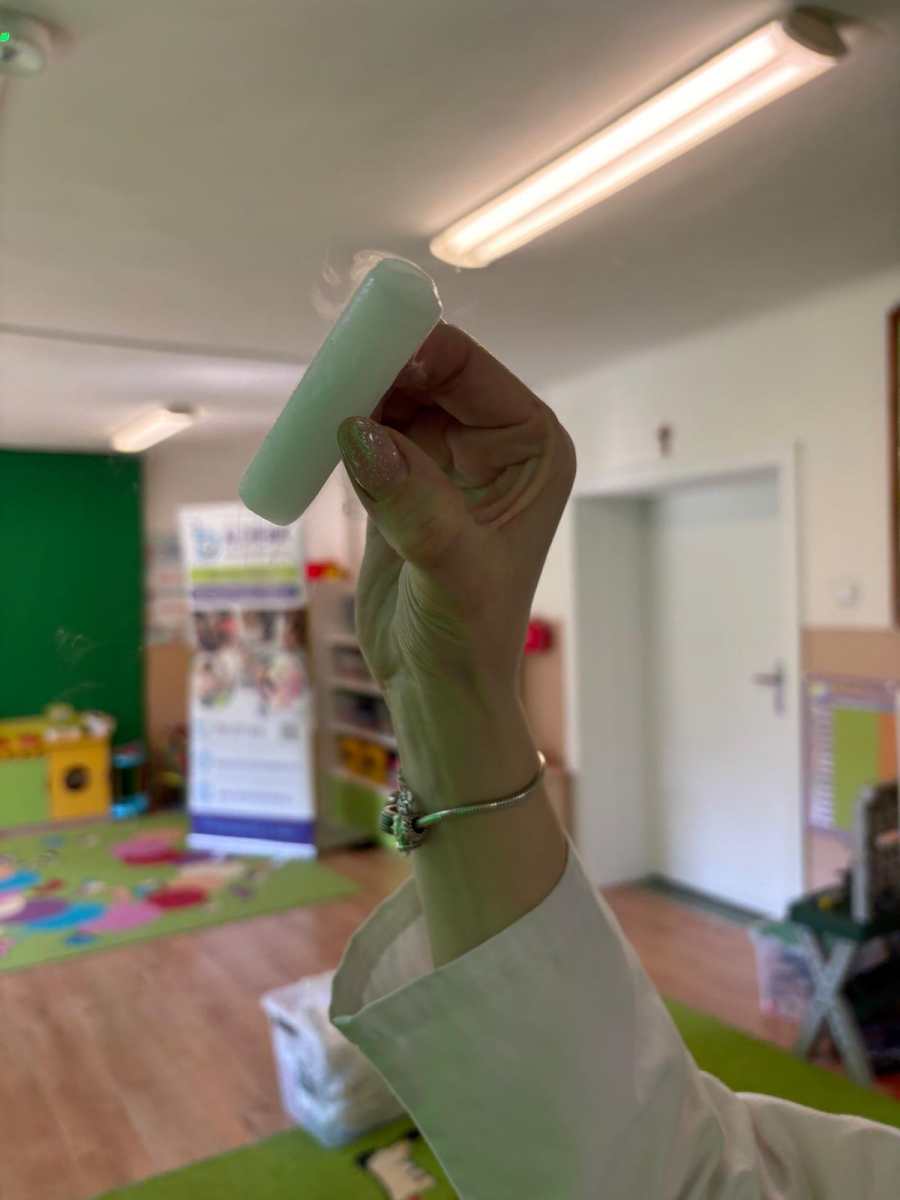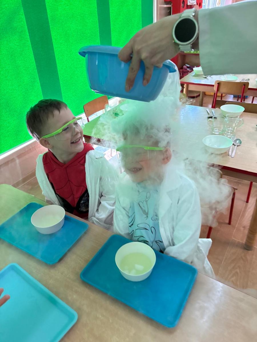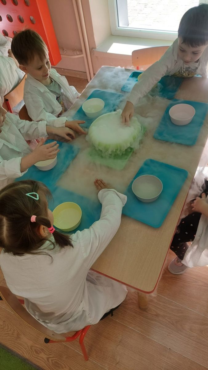 Główną atrakcją było doświadczenie z suchym lodem, dzięki któremu dzieci mogły zaobserwować zjawisko sublimacji – przejścia ze stanu stałego bezpośrednio w gazowy, z pominięciem stanu ciekłego. Warsztaty nie tylko dostarczyły mnóstwo radości, ale także rozbudziły ciekawość świata i chęć poznawania nauki poprzez zabawę.