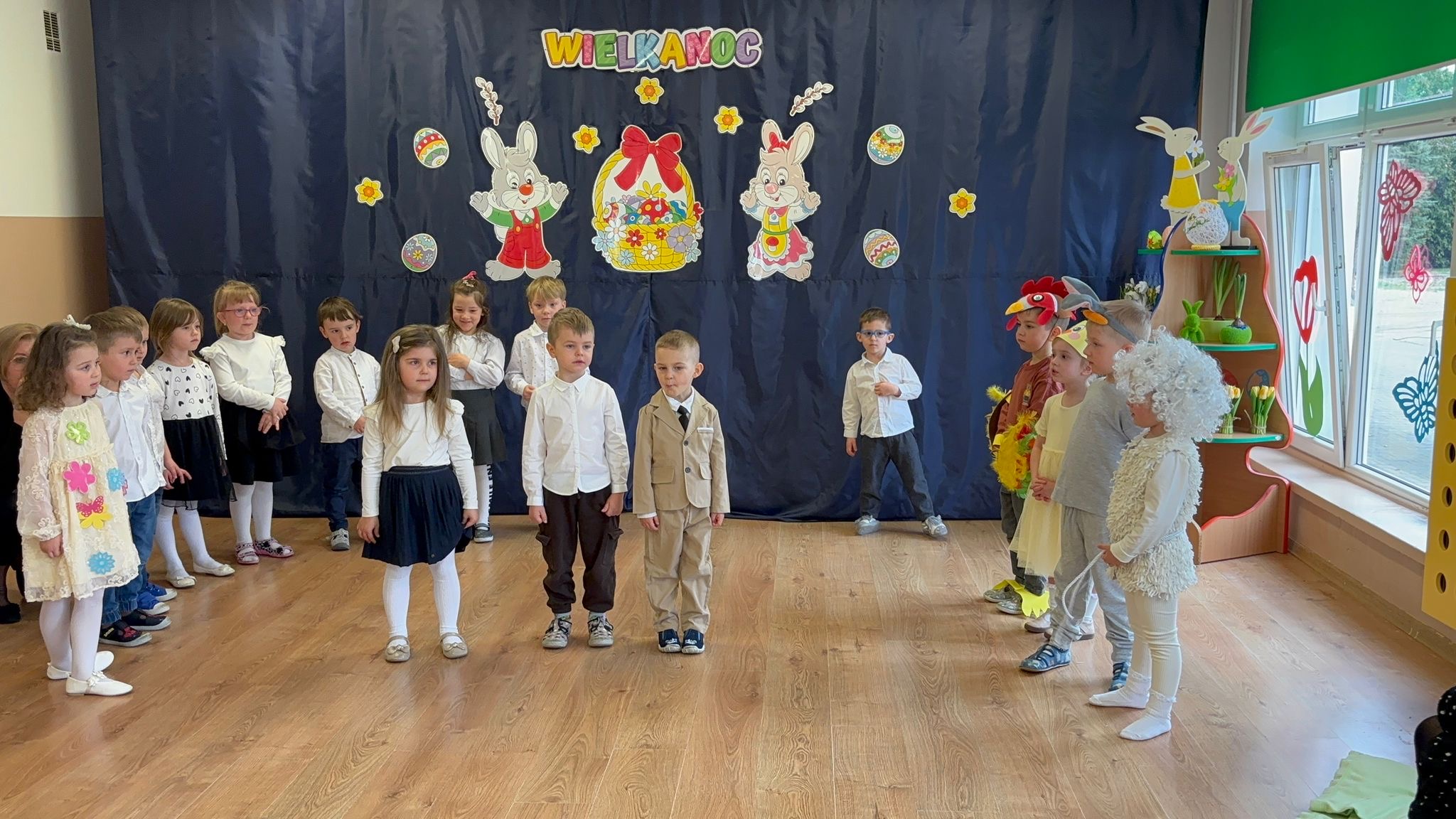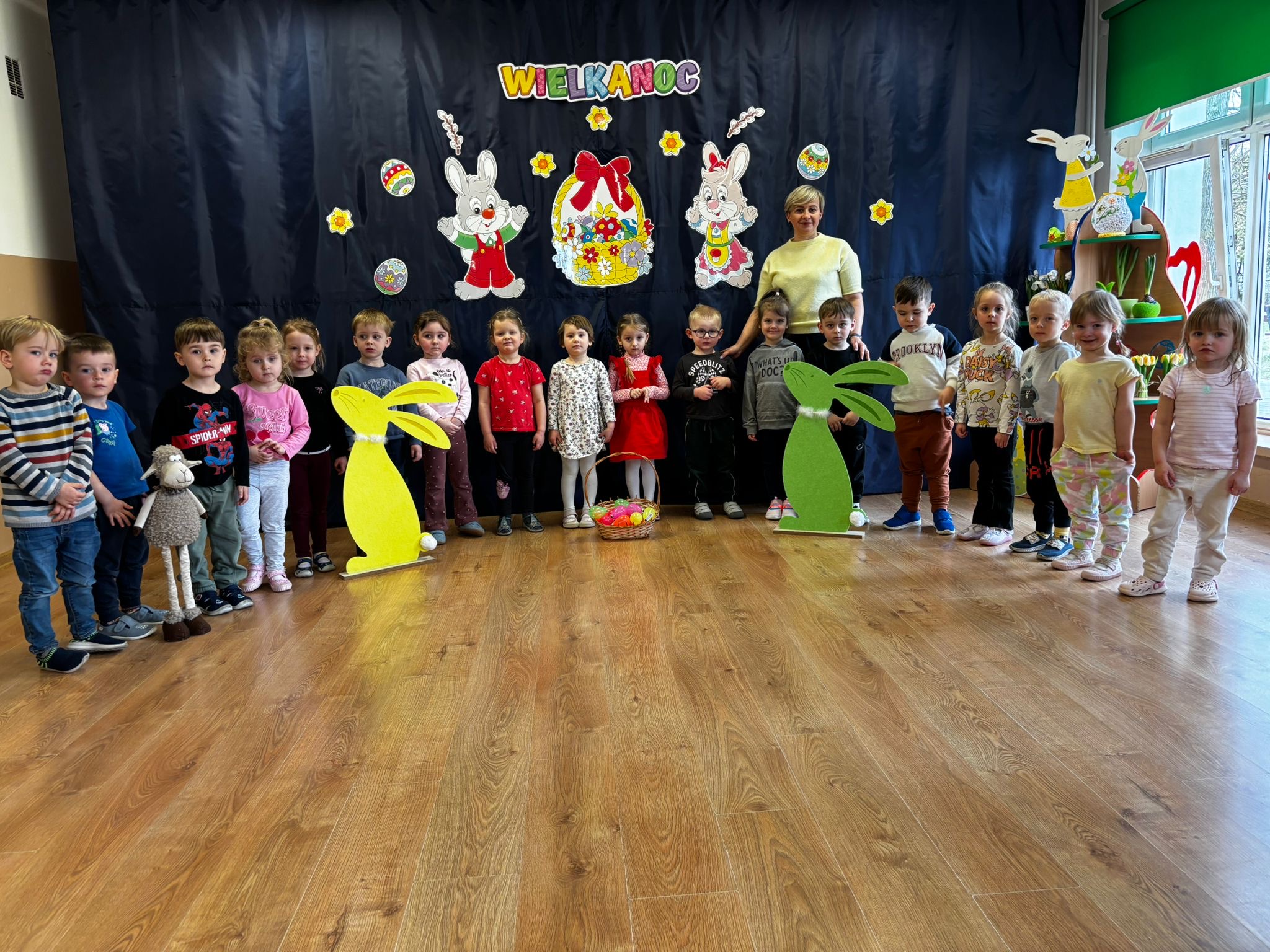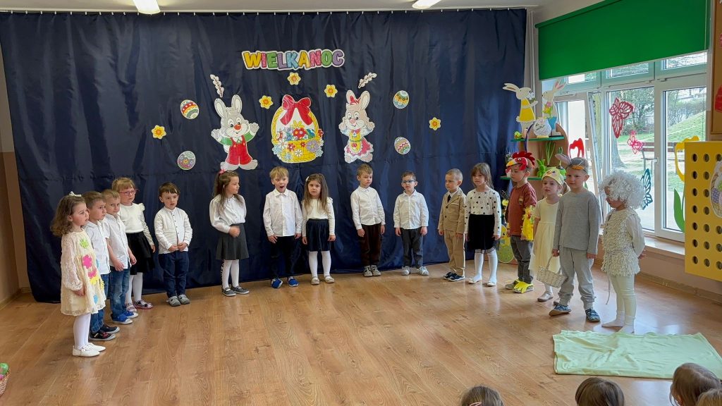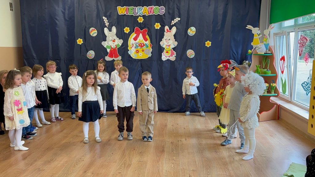 W naszym przedszkolu odbywa się akademia świąteczna przygotowana przez grupę Skrzatów i Odkrywców. Celem wydarzenia jest przybliżenie dzieciom tradycji, symboli oraz zwyczajów wielkanocnych, takich jak pisanki, zajączek czy baranek, w sposób dostosowany do ich wieku i możliwości poznawczych.