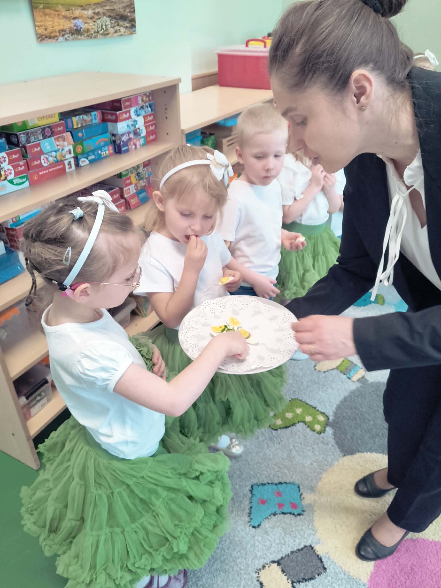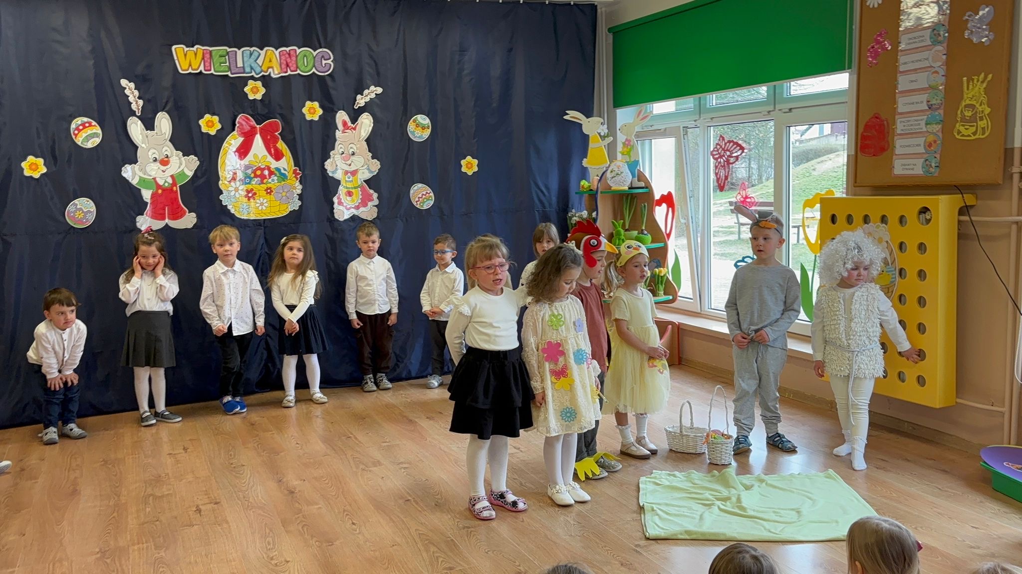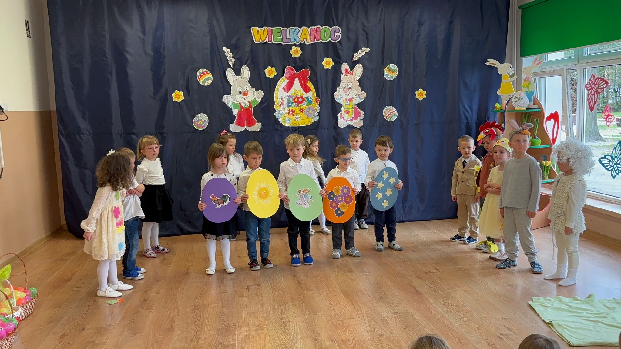 W naszym przedszkolu odbywa się akademia świąteczna przygotowana przez grupę Skrzatów i Odkrywców. Celem wydarzenia jest przybliżenie dzieciom tradycji, symboli oraz zwyczajów wielkanocnych, takich jak pisanki, zajączek czy baranek, w sposób dostosowany do ich wieku i możliwości poznawczych.